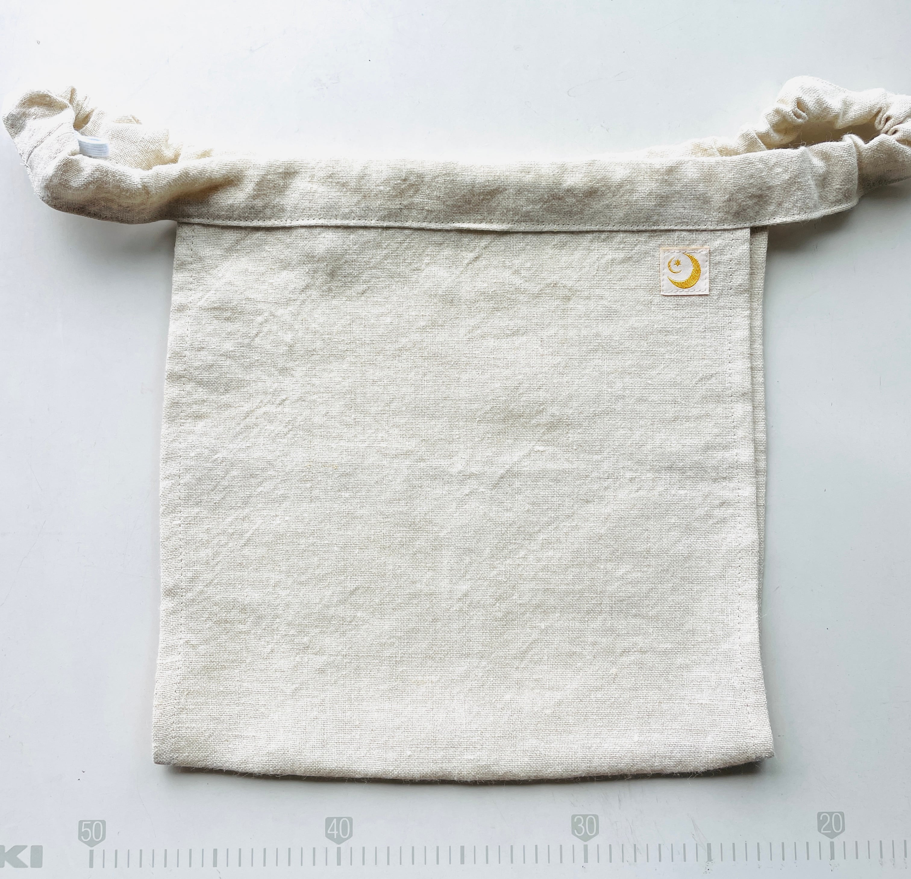 購入時はゴムが仮止めされていますので、一旦履いてから腰骨で引っかかる程度のゆるさにコマ結びをして調整してください。余ったゴムは2cmほど残してカットすれば、肌あたりせず痛くありません。自分の体型や好みに合わせて調節できるのも麻パンツの大きな特徴です。